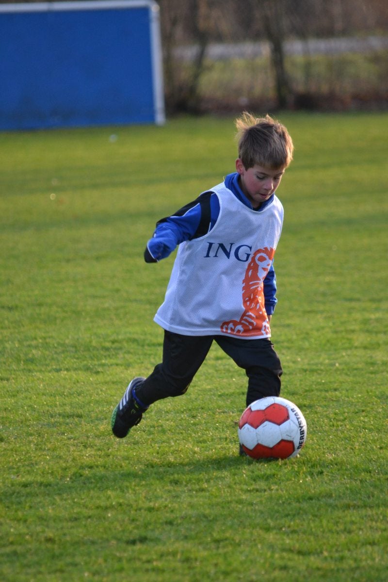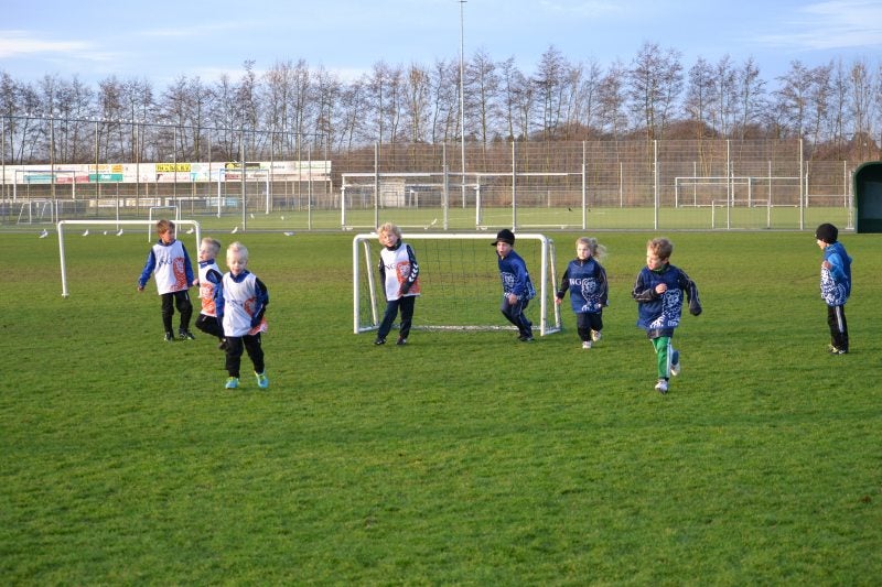 Motorisch gezien is de vier of vijfjarige toe aan voetbal. Hij of zij is energievol en actief. Hij rent liever dan dat hij loopt. Ook de waarneming neemt sterk toe en met de oog – voetcoördinatie zit het dus wel goed. Dribbelen, mikken, het zit erin. De Mini-pupil kan nog geen twee dingen tegelijk doen. Gefixeerd zijn op de bal en kijken wie er vrij loopt: verwacht het niet van hem. Het lichaam lijkt soms in de war en dan past de snelheid waarmee hij dribbelt bijvoorbeeld niet bij de ruimte die hij heeft of bij de situatie op het veld.
